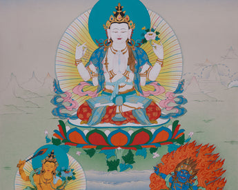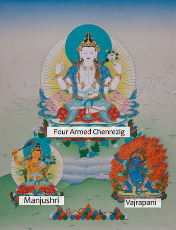 Avalokitesvara Thangka | Chenrezig with Manjushri & Vajrapani