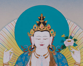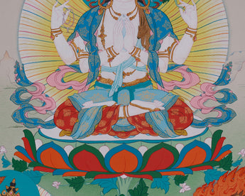 Hand-Painted Avalokitesvara Thangka | Karma Gadri Art on Cotton Canvas