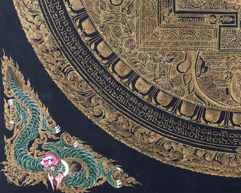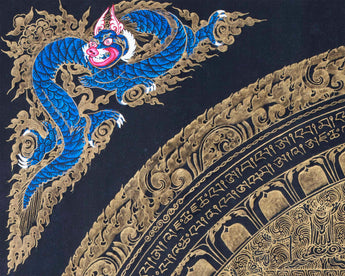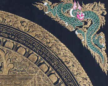 This painting is done Using mostly pure Gold . This technique of using gold is very ancient popular in Buddhist countries like Nepal and Tibet.