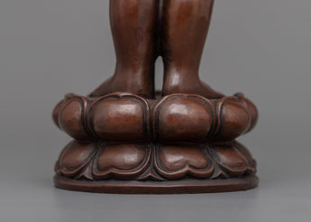 With our Baby Buddha statue, you may bring the element of serenity into your spiritual path. This oxidized copper masterpiece stands 9.6 inches tall and emanates a sense of serenity and peace, making it a great addition to any home or meditation place. Our skilled Nepalese artisans' superb craftsmanship is seen in every detail, from the tranquil countenance to the elaborate robe.