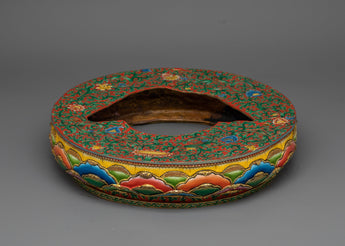 Reveal the splendor of the magnificent Crown Shakyamuni Buddha Statue, a magnificent representation of the enlightened Buddha creator wearing a royal crown. This statue, which stands an astounding 25.1 inches tall with a 14.1 inch base and weighs 17.88 kg, depicts the calm majesty and profound wisdom of Shakyamuni Buddha. This piece, which is made of a copper body and is gilded with 24K gold and meticulously painted in gold and acrylic, represents the union of spiritual enlightenment with earthly sovereignty.
