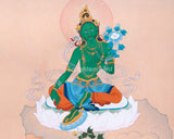 Beautiful Mother Green Tara Thangka For Mindfulness | Traditional Himalayan Thangka Painting For Ritual Practice