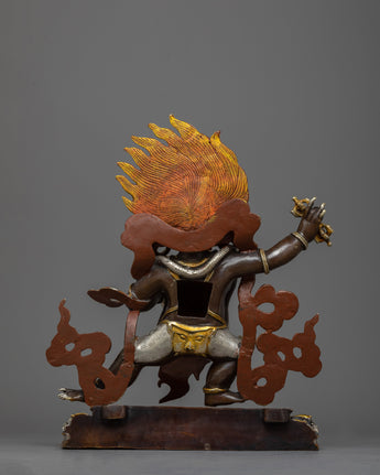 Presenting the magnificent Vajrapani Statue, an imposing image of Vajrapani, the protector of the Dharma and the embodied power of the Buddha. This statue, which stands an impressive 17.7 inches tall on a 12.5-inch base and weighs 7.98 kg, embodies the strength and fearlessness of Vajrapani. This artwork, crafted with an oxidized copper body for a timeless and venerable appearance, gold and acrylic paints, and silver plating for emphasis, is a testimonial to the refreshing and protective power of Vajrapani in the spiritual journey of the practitioner.