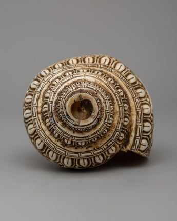 Crafted by expert artisans, this ancient conch shell has profound spiritual significance and is used to enhance Buddhist ceremonies, puja rituals, and sound healing. By producing clean vibrations, the Shankha is respected for its capacity to attract divine blessings and eliminate negative energy. This exquisitely carved Tibetan ritual conch is an enduring emblem of calm and heavenly protection, whether used for meditation, spiritual purification, or as a beautiful décor piece.