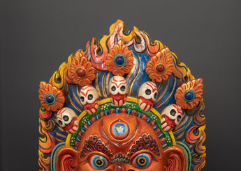 This mask, expertly built from high-quality wood and hand-painted with acrylic colors, boasts intricate detailing and expressive expressions, making it a practical addition to altar spaces, meditation rooms, or cultural exhibitions. Weighing 3.09kg, it is a magnificent showcase piece combining traditional workmanship and holy symbolism. Whether used for spiritual devotion, artistic appreciation, or ornamental purposes, this Bhairav mask is a timeless masterpiece of strength, wisdom, and divine protection.