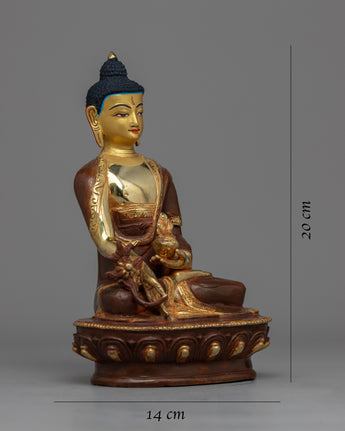 With each glance, this statue serves as a reminder of the profound healing wisdom and compassionate energy embodied by Bhaisajyaguru. Invite this exquisite piece into your sacred space, and let it become a source of solace, inspiration, and spiritual rejuvenation.