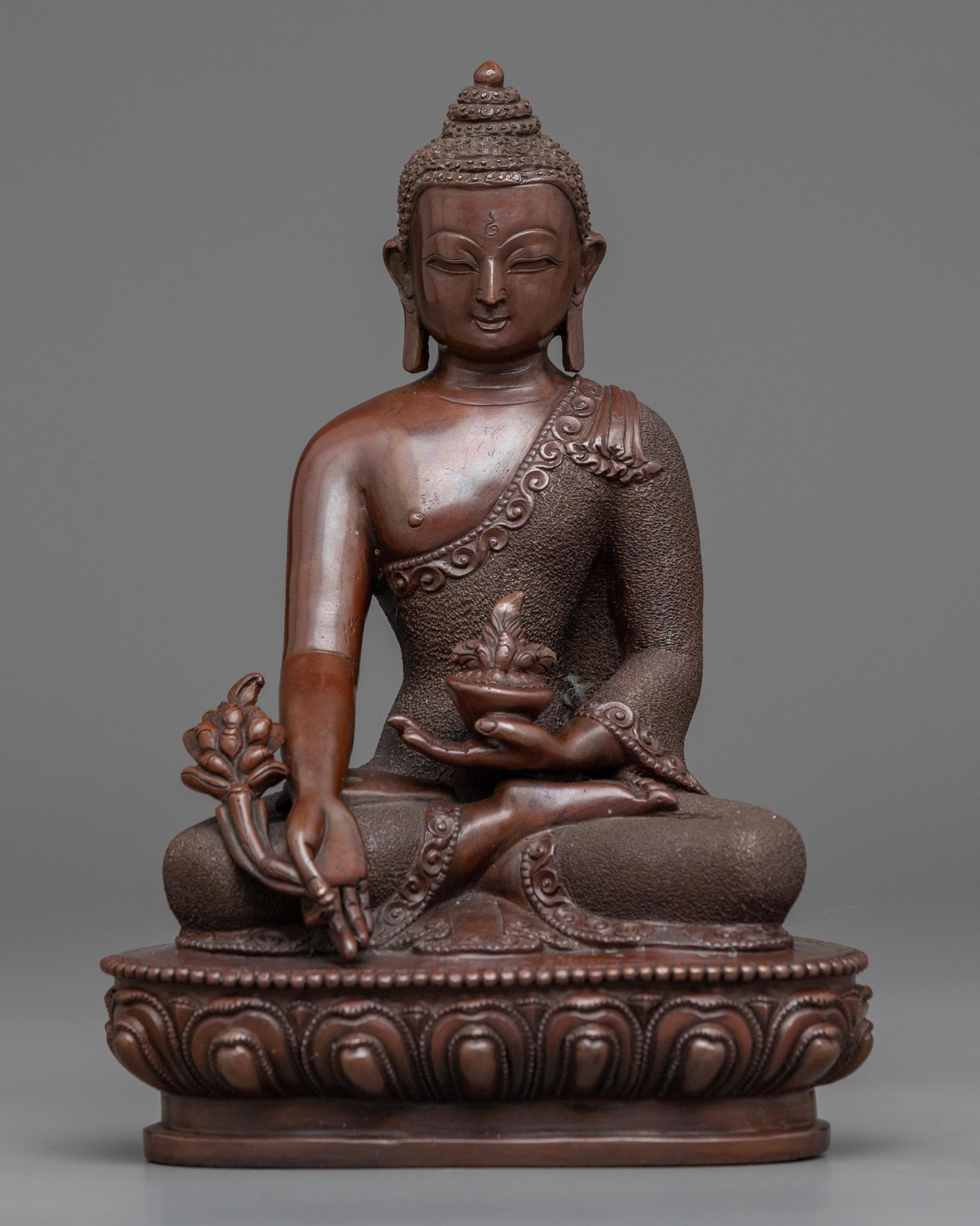Bhaisajyaguru Medicine Buddha Statue | Buddhist Oxidized Copper Sculpture for Healing