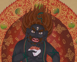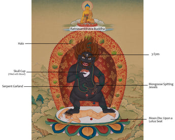 Traditional Artwork of Black Dzambhala with Ratnasambhava Buddha | LHASA Hues in Divine Artistry