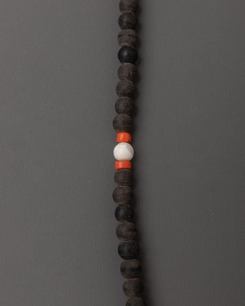 47cm Black Stone Mala | 8mm Meditation Beads with Coral & Turquoise Stones