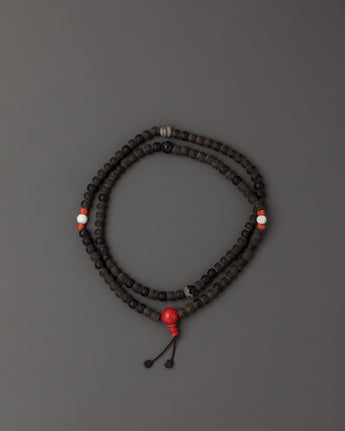 Tibetan mala beads are sacred and spiritual accessories used in meditation and prayer. These bead strings typically consist of 108 beads, though shorter variations exist. Each bead is carefully handcrafted from materials like wood, bone, or gemstones, and they are often adorned with a guru bead and a decorative tassel. Mala beads are a tactile aid for counting mantra repetitions or breaths during meditation, fostering mindfulness and concentration. They hold deep significance in Tibetan and Buddhist traditions, helping practitioners connect with their inner spirituality while embodying a sense of peace and mindfulness in daily life.