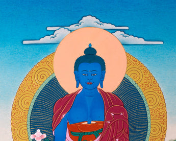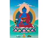 Note: Medicine Buddha Thangka is an original painting from Enlightenment Studio located at Boudha Stupa.