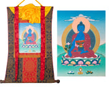 Blue Medicine Buddha Brocade Thangka, Lapis Lazuli Menla Art