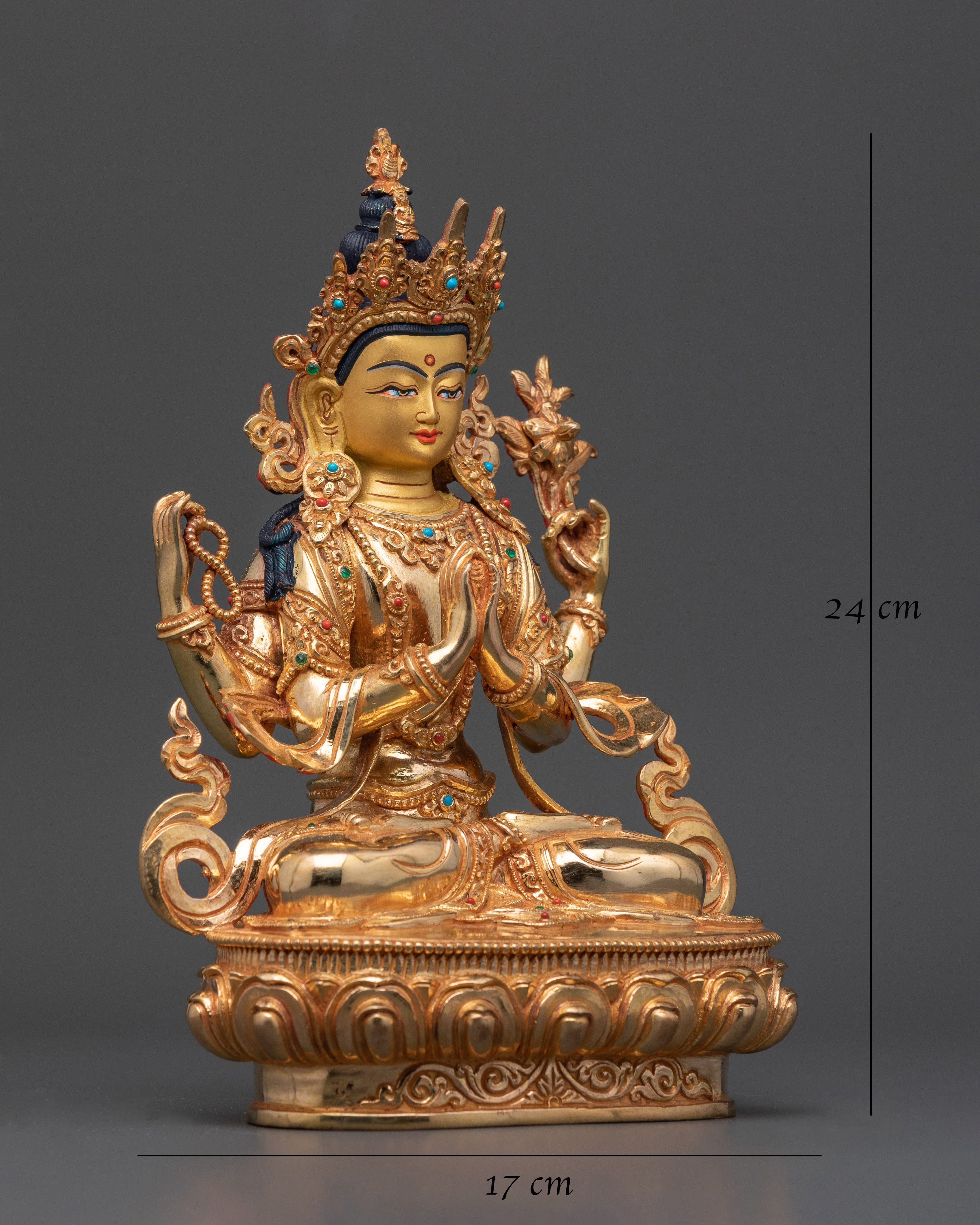 Chenrezig Buddha | Bodhisattva Statue in 24K Gold Gilded Copper