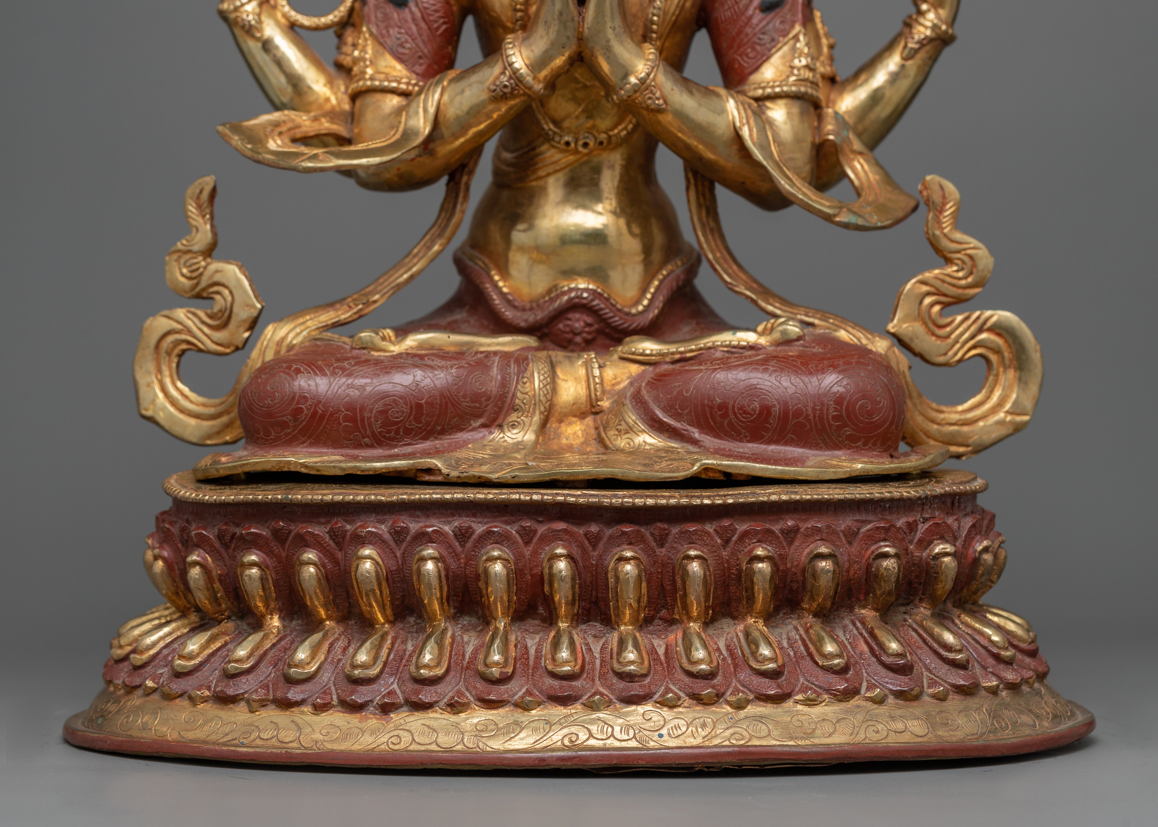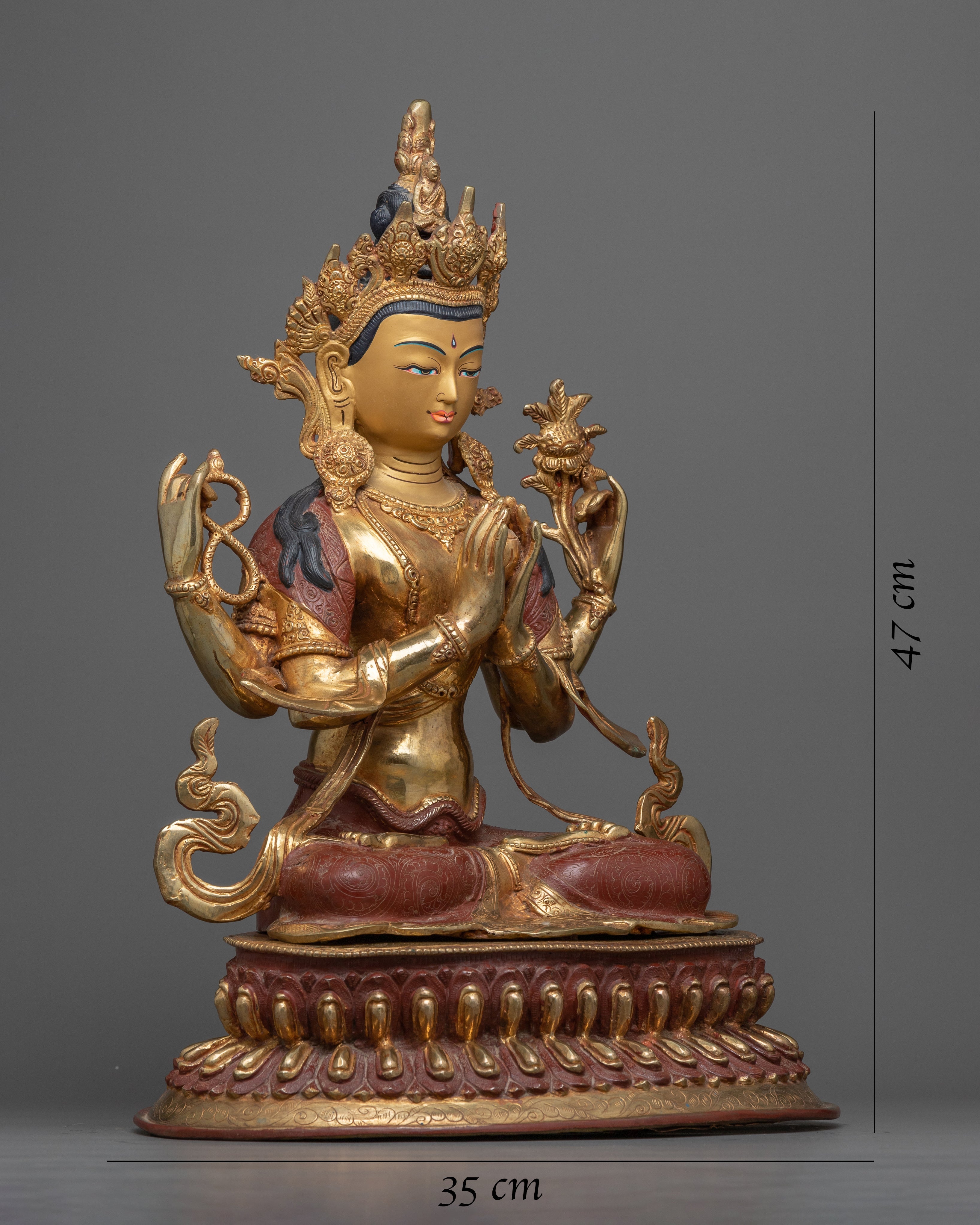 Handmade 18.5 Inches Bodhisattva Chenrezig Idol, 24k Gold Gilded