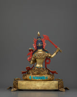 Manjushri, the Bodhisattva of Wisdom, is one of the most important figures in Tibetan Buddhism, symbolizing the power of profound wisdom that dispels ignorance and illuminates the path to enlightenment. Depicted holding the flaming sword of wisdom and the Prajnaparamita Sutra, Manjushri is a revered deity who brings clarity, intellectual insight, and spiritual awakening to those who invoke his presence.
