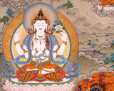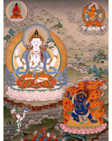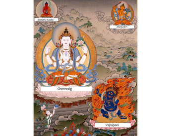 Bodhisattva Thangka | Chenrezig with Vajrapani, Manjushri and Amitabha Buddha