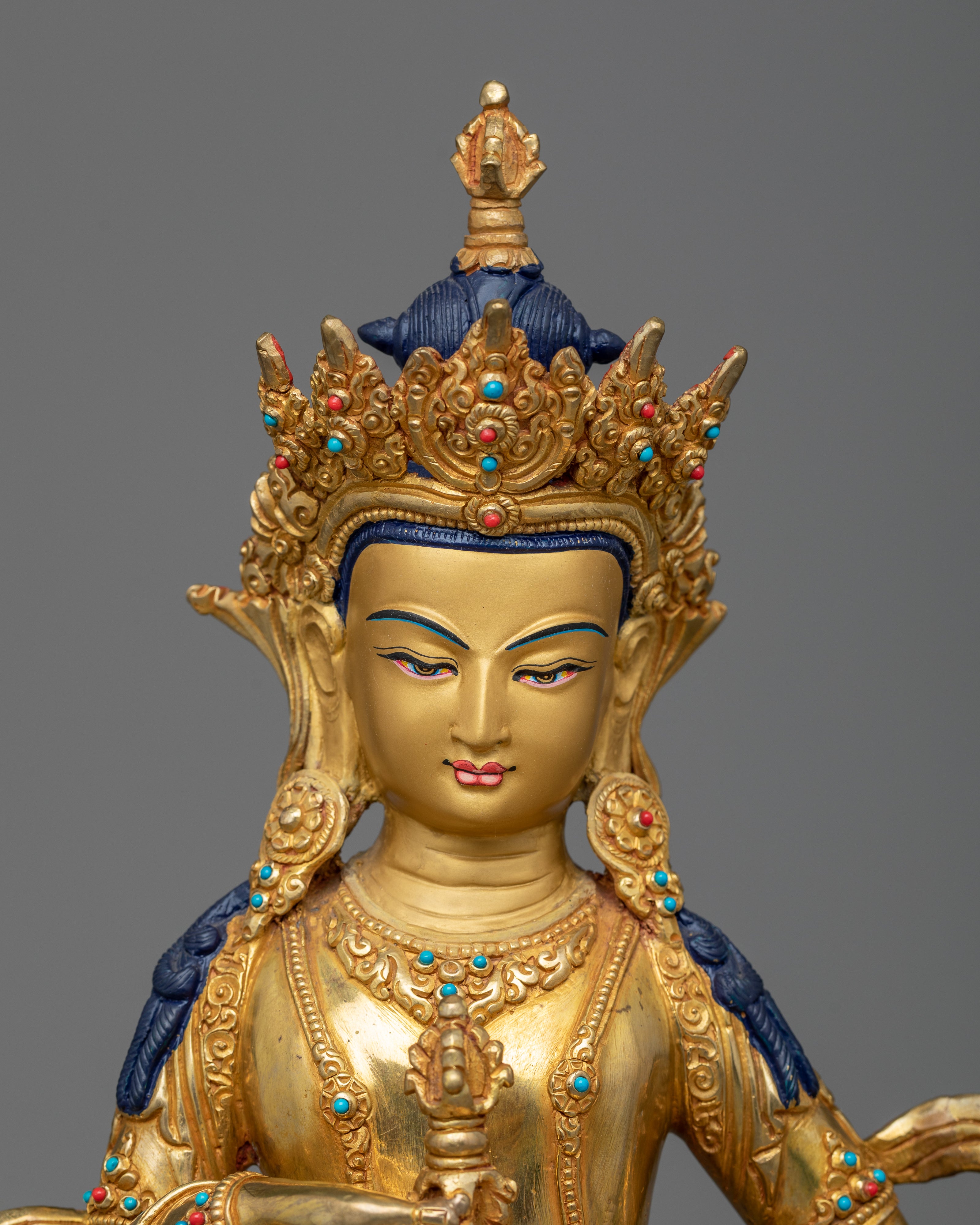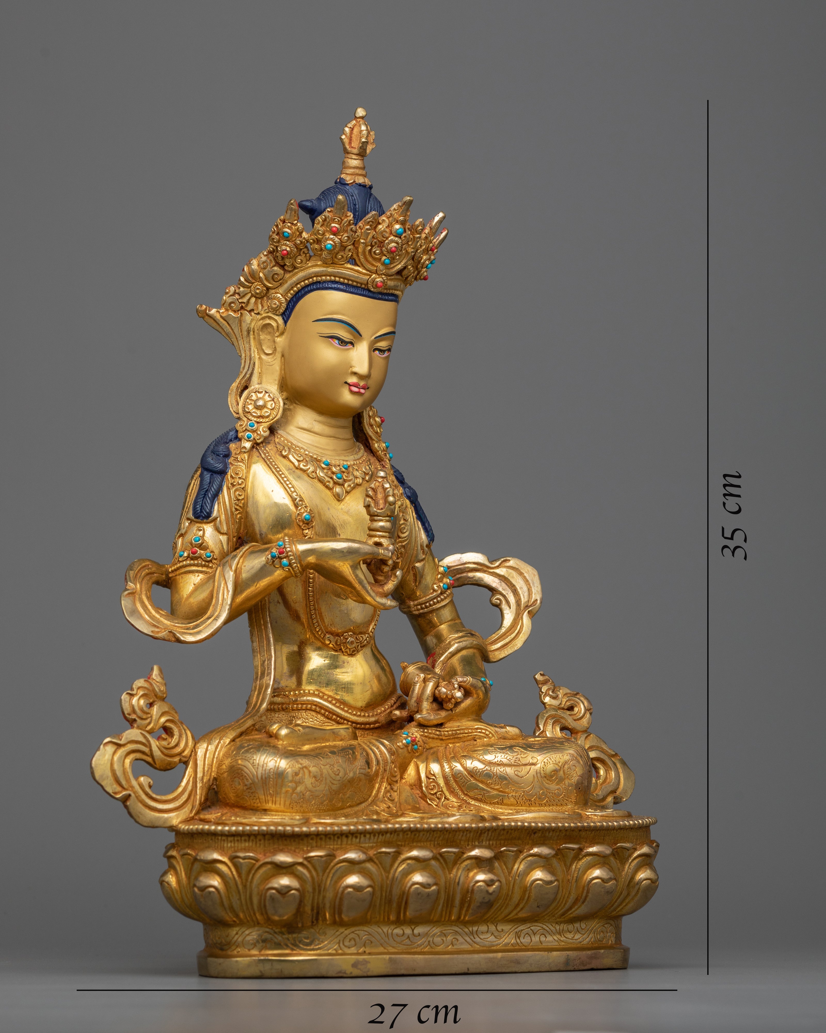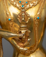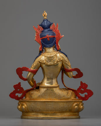 Enhance your shrine with our Bodhisattva Vajrasattva statue, an example of spiritual purity and exceptional craftsmanship. This figure, glistened in 24k gold and complemented by beautiful acrylic paintings, stands as a light of atonement and spiritual clarity. The long-lasting copper body, lavishly decorated in gold, has a timeless atmosphere that compliments its profound spiritual meaning.