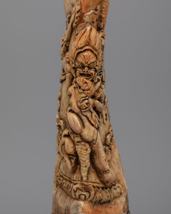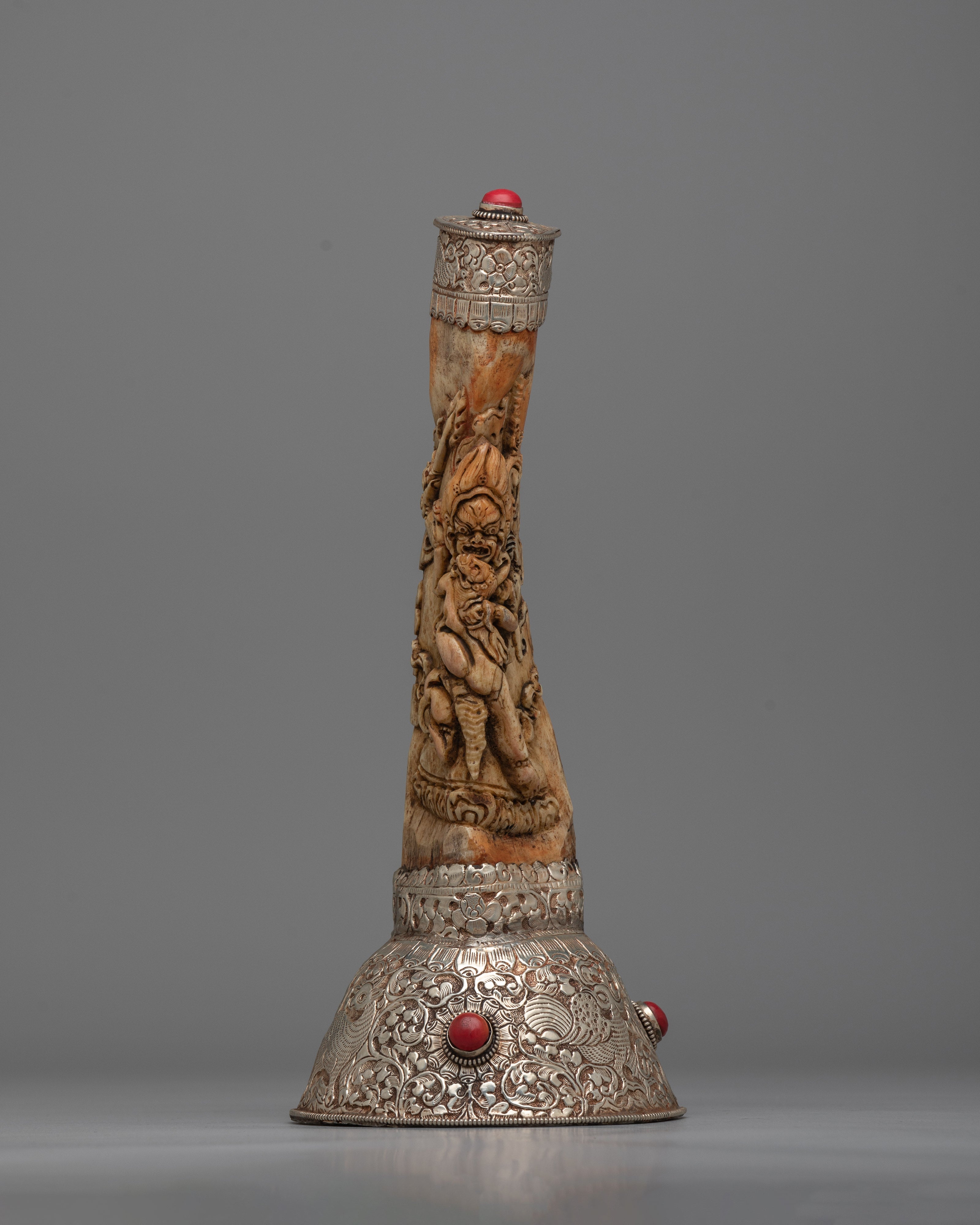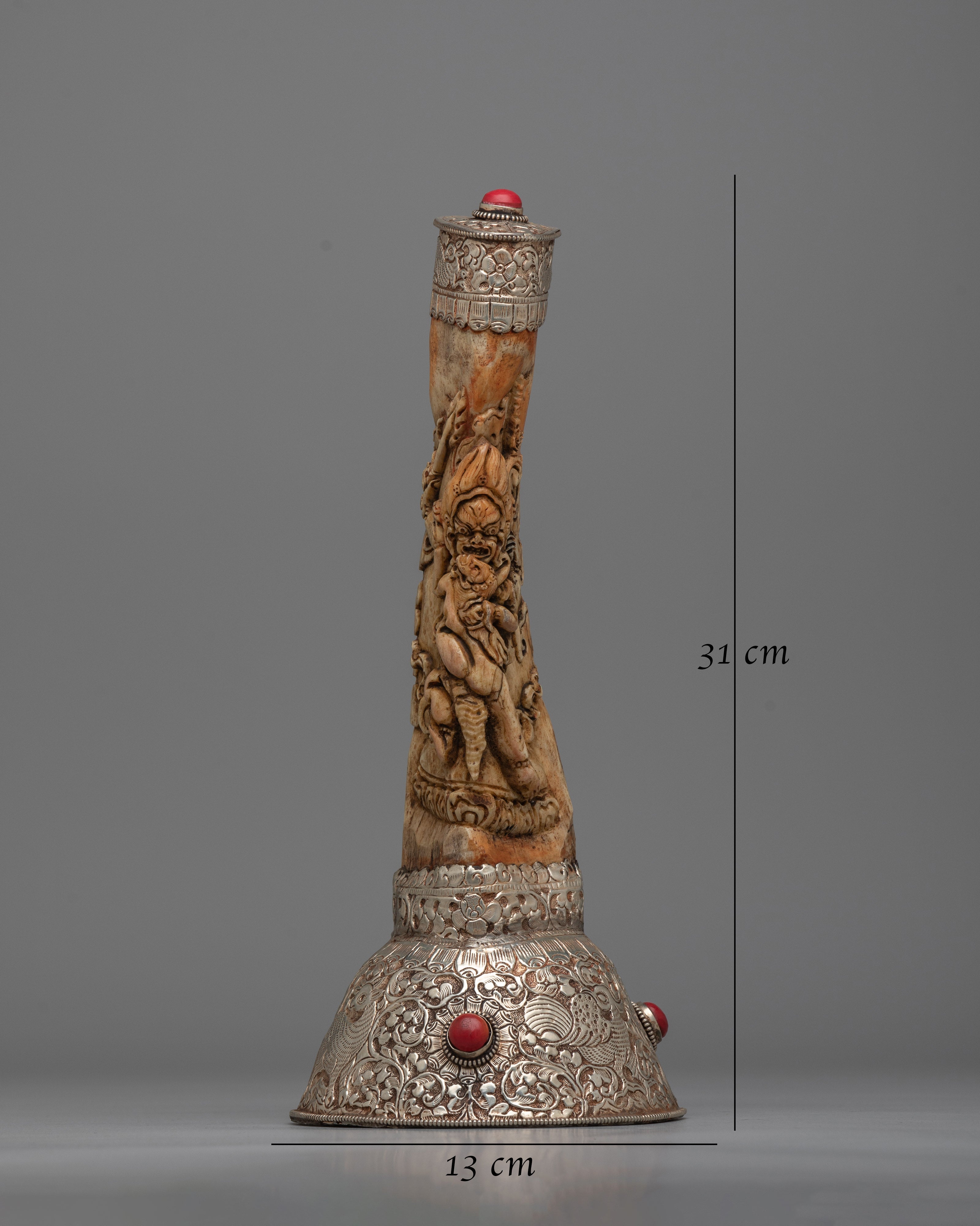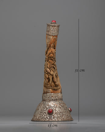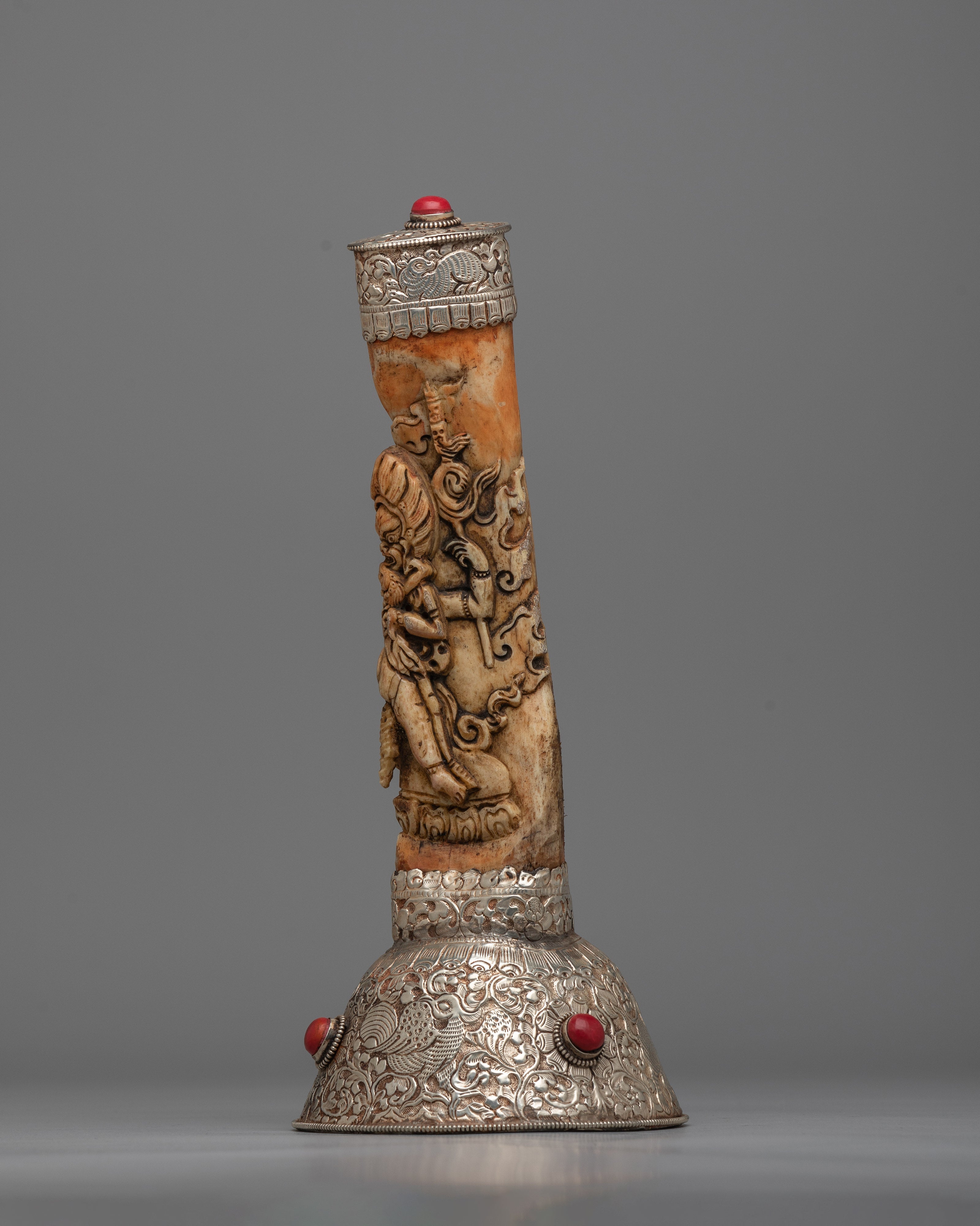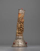 The White Metal Bone Stamp is a harmonic mix of craftsmanship and reverence, delicately made to honour tradition and spirituality. This elegant item is handcrafted with care on a base of spotless white metal and features ethically sourced buffalo bone, assuring a link to nature and respect for all beings. It is adorned with a delicately carved deity on bone, capturing the sense of divine grace and spiritual devotion.
