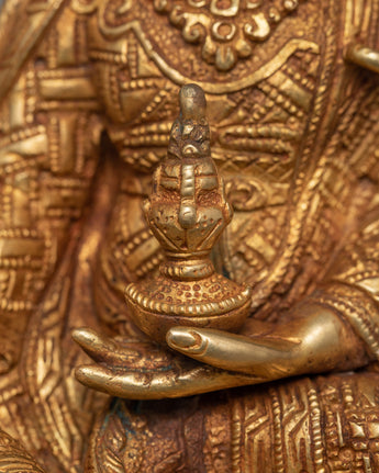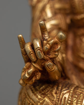 The statue gains more majesty and respect from the 24k gold gilding, which also enhances the statue's aesthetic appeal and symbolic meaning. The Born From Lotus Guru Rinpoche Statue is a potent reminder of spiritual dedication and the enlightenment journey, whether it is placed in meditation areas, personal altars, or holy locations.