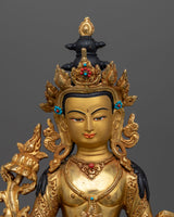 24K Gold Gilded Brahmin Maiden "Kshitigarbha" Statue | Handcarved Art