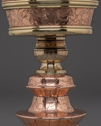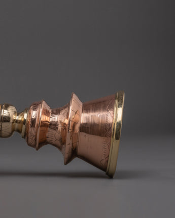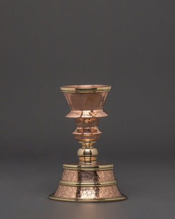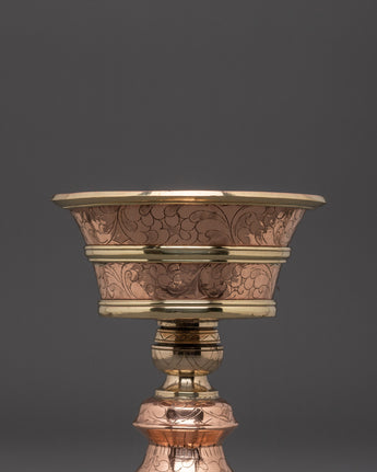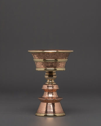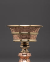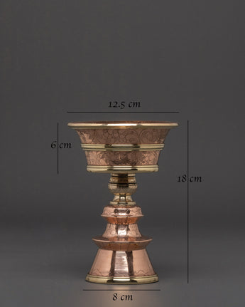 This handcrafted brass border butter light will improve your spiritual rituals with its bright attractiveness and symbolic significance. This copper and brass light set is ideal for Buddhist prayer, meditation sessions, or sacred area design because it is visually appealing. The lamp's sturdy construction and exquisite appearance make it an ideal addition to any meditation altar setting. Enjoy the classic appeal and spiritual aura that this ritual copper light adds to your holy area.
