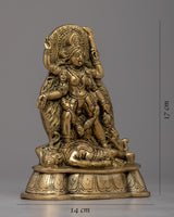 Presenting the magnificent Brass Kali Mata Statue, carefully crafted by hand on a brass body. This exquisite statue depicts Goddess Kali standing tall and declaring her dominance over evil forces, perfectly capturing her fierce and mesmerizing form. The deity's strength and power are highlighted by the intricate details on the statue, which range from her many arms bearing weapons to her intense expression. The sculpture's divine aura is enhanced by the brass body's radiant glow. This statue is a potent reminder of courage and empowerment because it symbolizes the fierce and shielding energy of Goddess Kali. To invite the presence and blessings of the deity, place it in your sacred space or a prominent location in your home.