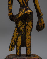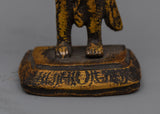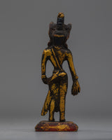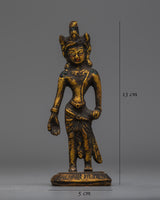 This Standing Lokeshvara Bodhisattva Statue is wonderfully made from brass and has an antique finish that adds to its everlasting beauty. It stands 13 cm tall, 5 cm wide, and weighs 0.23 kg. This statue of Lokeshvara, the Bodhisattva of Compassion, is both miniature and strong.