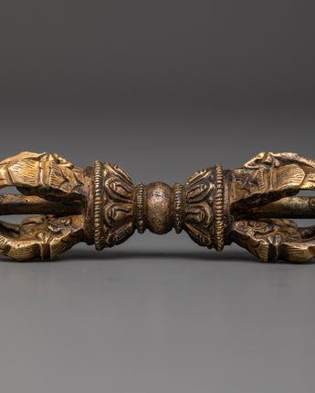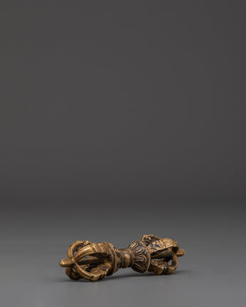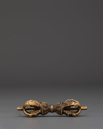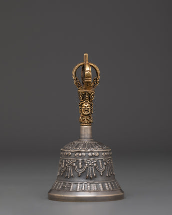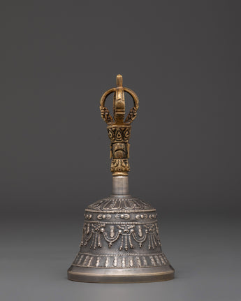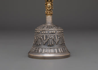 The Tibetan Bell represents enlightenment, wisdom, and compassion in Buddhist rituals. Its clean, resonant tone serves as a reminder of the clarity and focus required to follow one's spiritual path. The Vajra, measuring 2.3 cm in height and 10 cm in width, complements the bell well. The Vajra, a symbol of indestructibility and spiritual power, energizes your practice and meditation. The highly detailed craftsmanship on both the bell and the vajra demon showcases the skill and attention required in their fabrication.