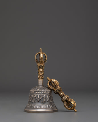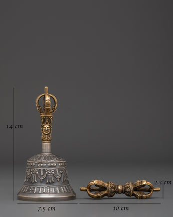 Brass Tibetan Bell & Vajra Set | Handmade Buddhist Bell and Vajra for Prayer,