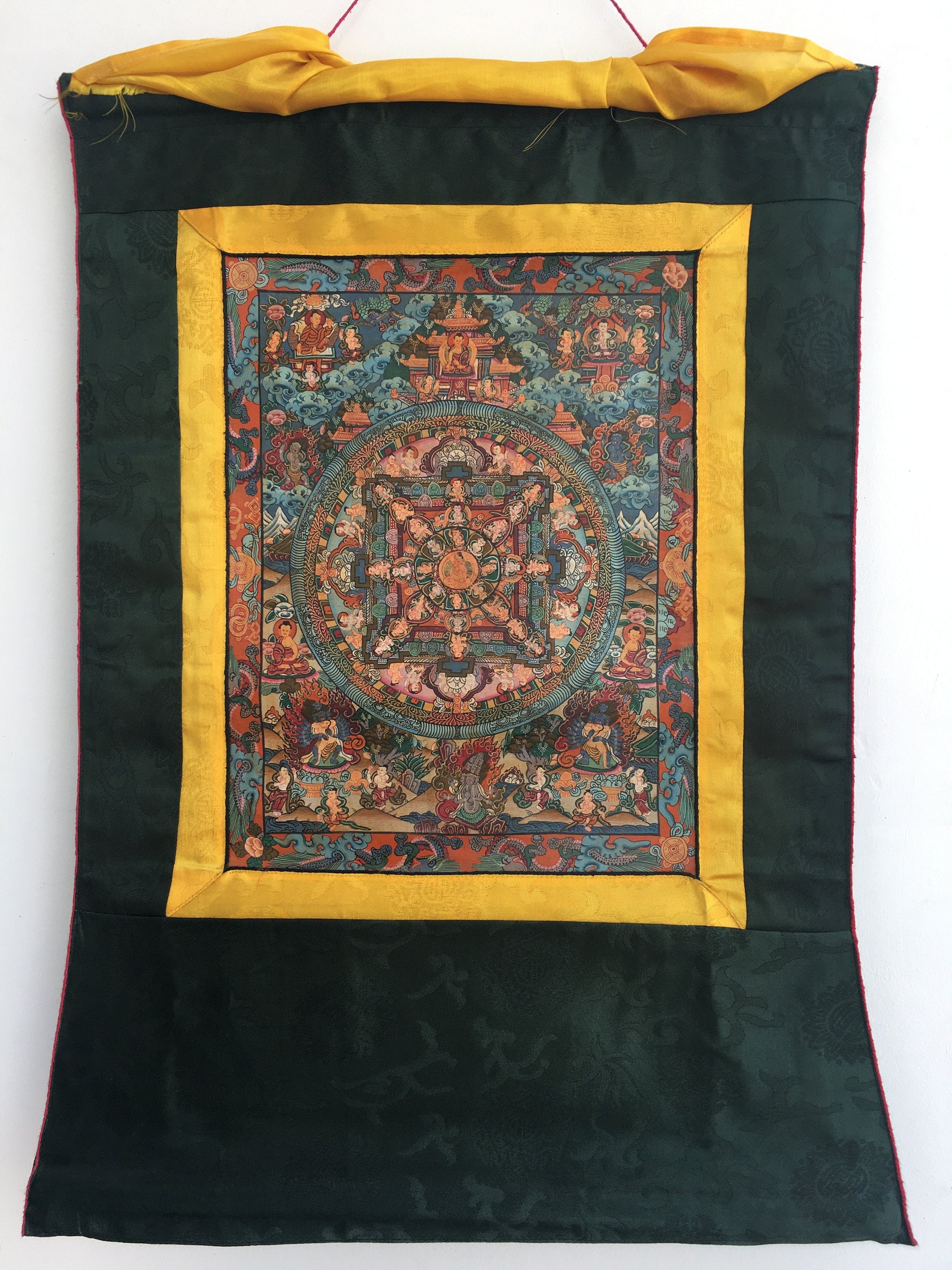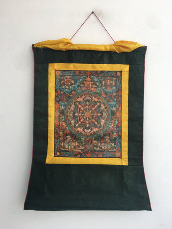 As you hang this Brocade Mounted Mandala Thangka painting in your space, allow its radiant beauty and profound symbolism to envelop you. May it serve as a constant reminder of the spiritual path, inviting contemplation and fostering a sense of harmony and tranquility in your surroundings.