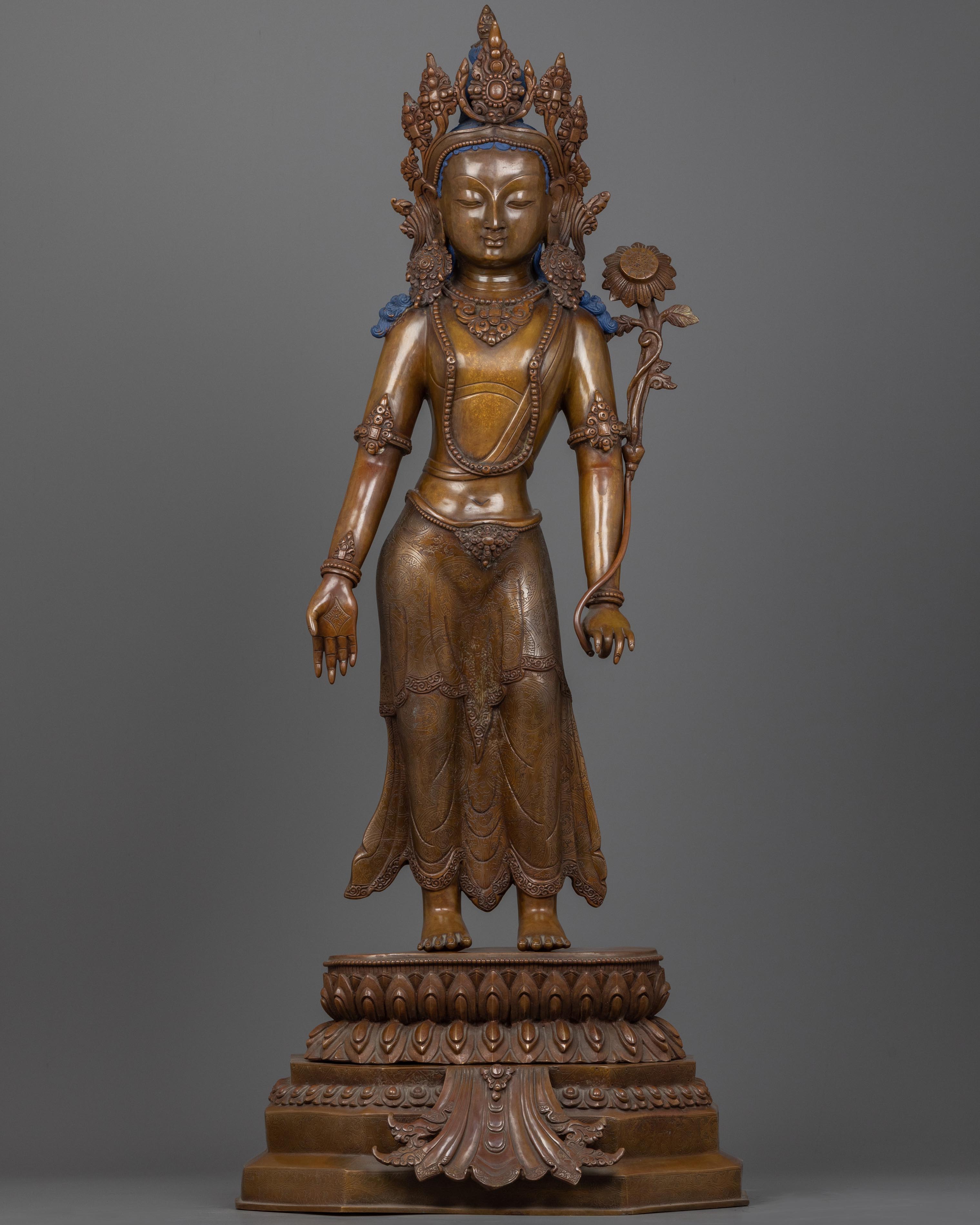 With the generation of skill passed down, our sculpting artist has created yet another showpiece worth Bronze Chenrezig Statue. Although it gave a vibe and was made to look like bronze, the actual material used to carve this statue is oxidized copper. Our artist stated he used oxidized copper to give it a vintage and bronze-like look. Heisshownashavingalltheattributesandsymbolsrequiredtoassistyouinyour meditationpractice,includingstandingonalotus,dressinginmagnificentembellishments, and donningabodhisattvacrown.Thestatuewasmadeusingmaterialsofthebestquality,andtheywillremainingoodconditionformanyyearstocome.