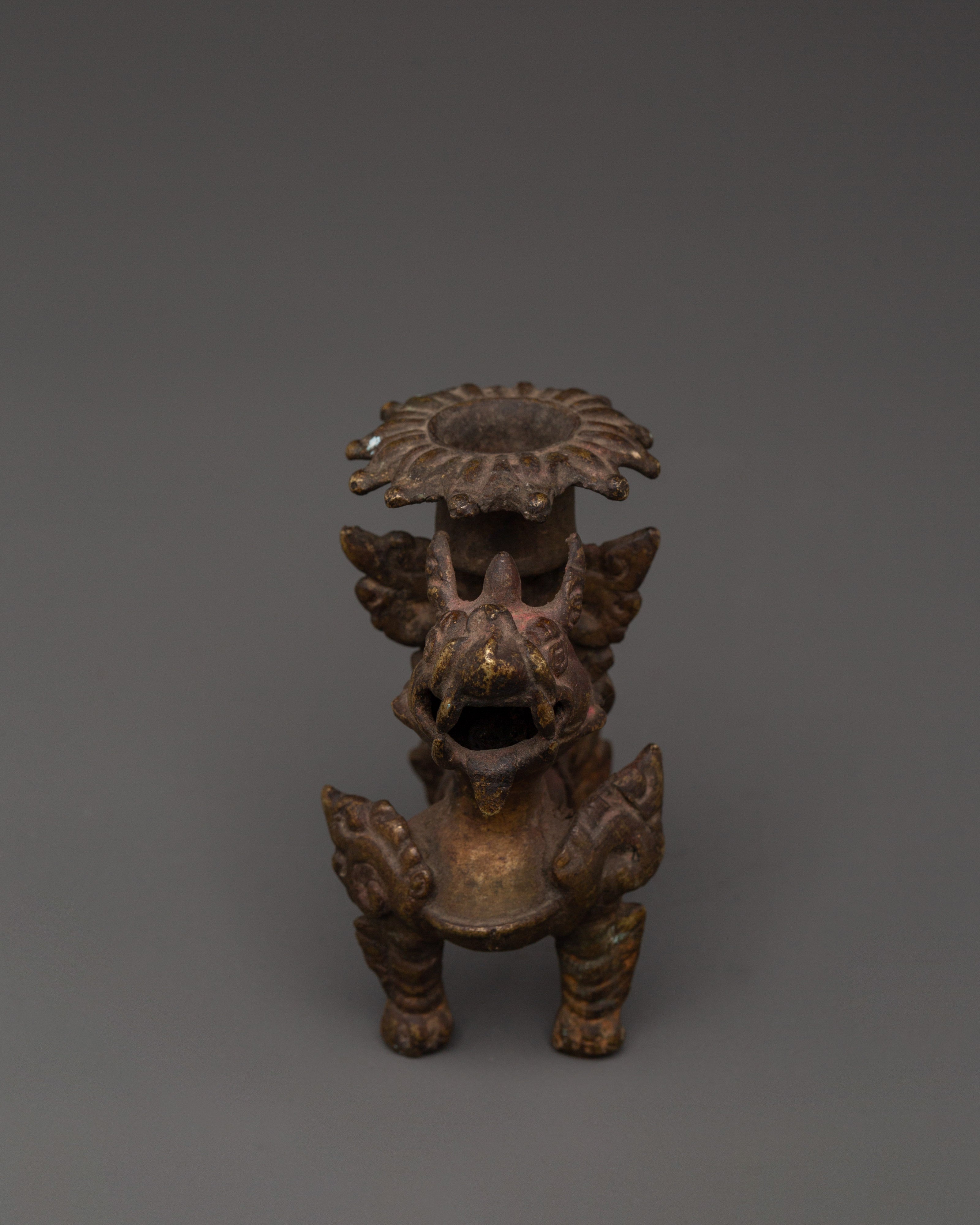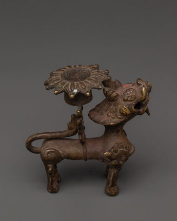Bronze Lion Candle Holder for Hindu Rituals | Meditation Accent