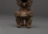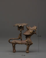 Crafted from bronze using traditional metal casting techniques, this lamp is a utilitarian spiritual tool and a cultural artwork. The lion is intimately associated with ferocious protector deities such as Durga and Narasimha, representing victory over darkness and fear. Its deep bronze tone and gentle worn patina give it an elegant appeal, making it appropriate for ceremonial and ornamental reasons. Whether you burn it during a daily prayer, give it to a spiritually inclined loved one, or exhibit it as part of your temple decor, this sacred sculpture represents devotion, craftsmanship, and legacy in a single strong form.