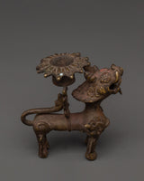 Bronze Lion Candle Holder for Hindu Rituals | Handcrafted Oil Lamp