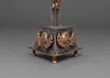 A key weapon in Tibetan Buddhism and Himalayan shamanic traditions, the bronze-made Phurba dagger is frequently utilized in ceremonies to ward off evil spirits, expel negativity, and cleanse areas. Its three-sided blade stands for the triumph of aversion, attachment, and ignorance, the three primary sources of misery. This is a work of holy craftsmanship, with a spiritual connotation by the combination of the iron body and bronze finish. This bronze Tibetan Phurba dagger is a spiritual tool for advanced practitioners, collectors of spiritual items, and those establishing a high-energy ritual setting.