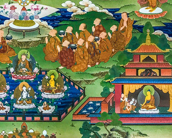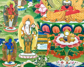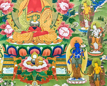 If you are doing any practice related with Amitabha Buddha then this thangka can be your perfect support. On the thangka we have eight close bodhisattvas like Manjushri, Chenrezig, Maitreya, Samantabadra, Kshitigarba, Akashgarbha, Vajrapani, and Sarvanivaranavishkambhin.