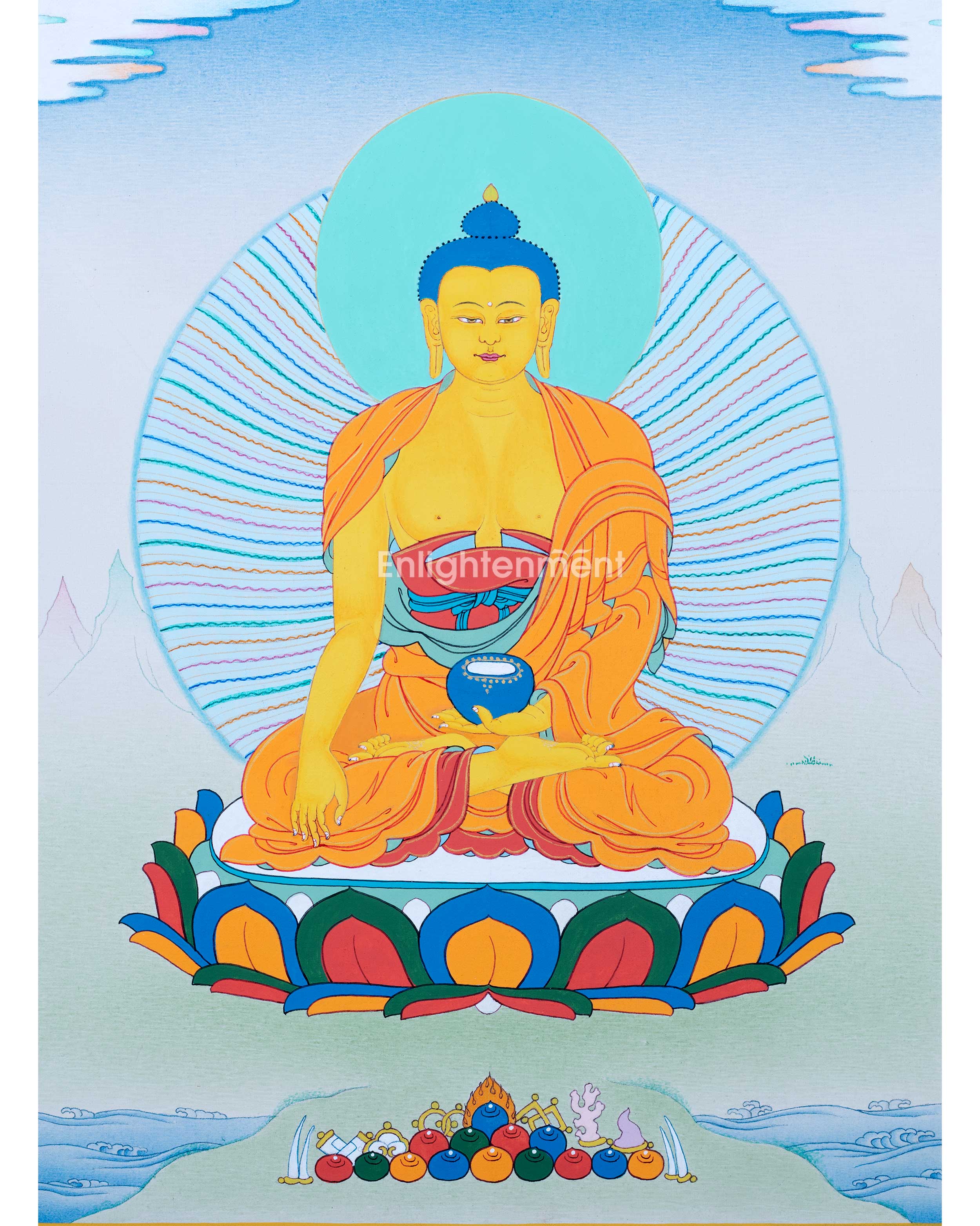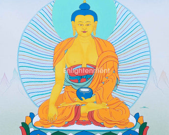 Note: Shakyamuni Buddha Thangka is an original painting from Enlightenment Studio located at Boudha Stupa.