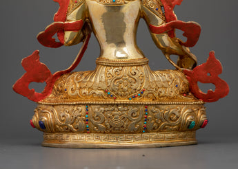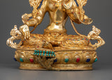 Buddha Green Tara Sculpture | 24K Gold Gilded Copper Statue