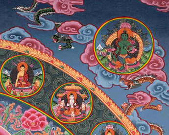 It goes without saying that every detail of a painting has a symbolic meaning. Regardless of your religious affiliation, a thangka can help you on your path to enlightenment, whether you practice Buddhism or have other religious convictions. Thangkas are paintings that depict deities with various iconographic elements and symbolism that encourage meditation on the teachings of the god they depict. Any thangka is intended to aid in the removal of the film of ignorance, which is a significant barrier to the road to enlightenment. The Thangka is revered as a holy item. They promote positivity, spread Buddhism's teachings, bring about peace, harmony, and oneness, and dispel any negative energy that may be there.