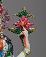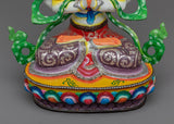 Termatree's handcrafted Buddha of Compassion Chenrezig welcomes you to the realm of holy compassion. This magnificent statue, towering 12.9" tall and resting on a 9.2" base, exemplifies Nepalese craftsmanship. Our expert artisans pour their hearts and souls into every detail, resulting in a piece that is as one-of-a-kind as it is spiritually significant.