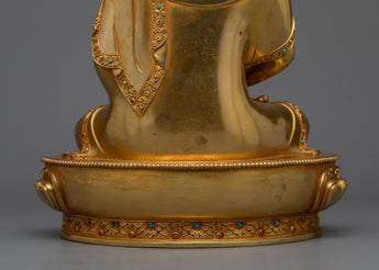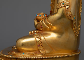 This statue stands dazzling in rich 24k gold, representing the deity's radiant characteristics. The superb acrylic paintings add layers of depth, calling attention to Amitabha's contemplative emotions and meticulous details. This figure, sculpted from strong copper, combines durability and artistry and is meant to be passed down through generations.