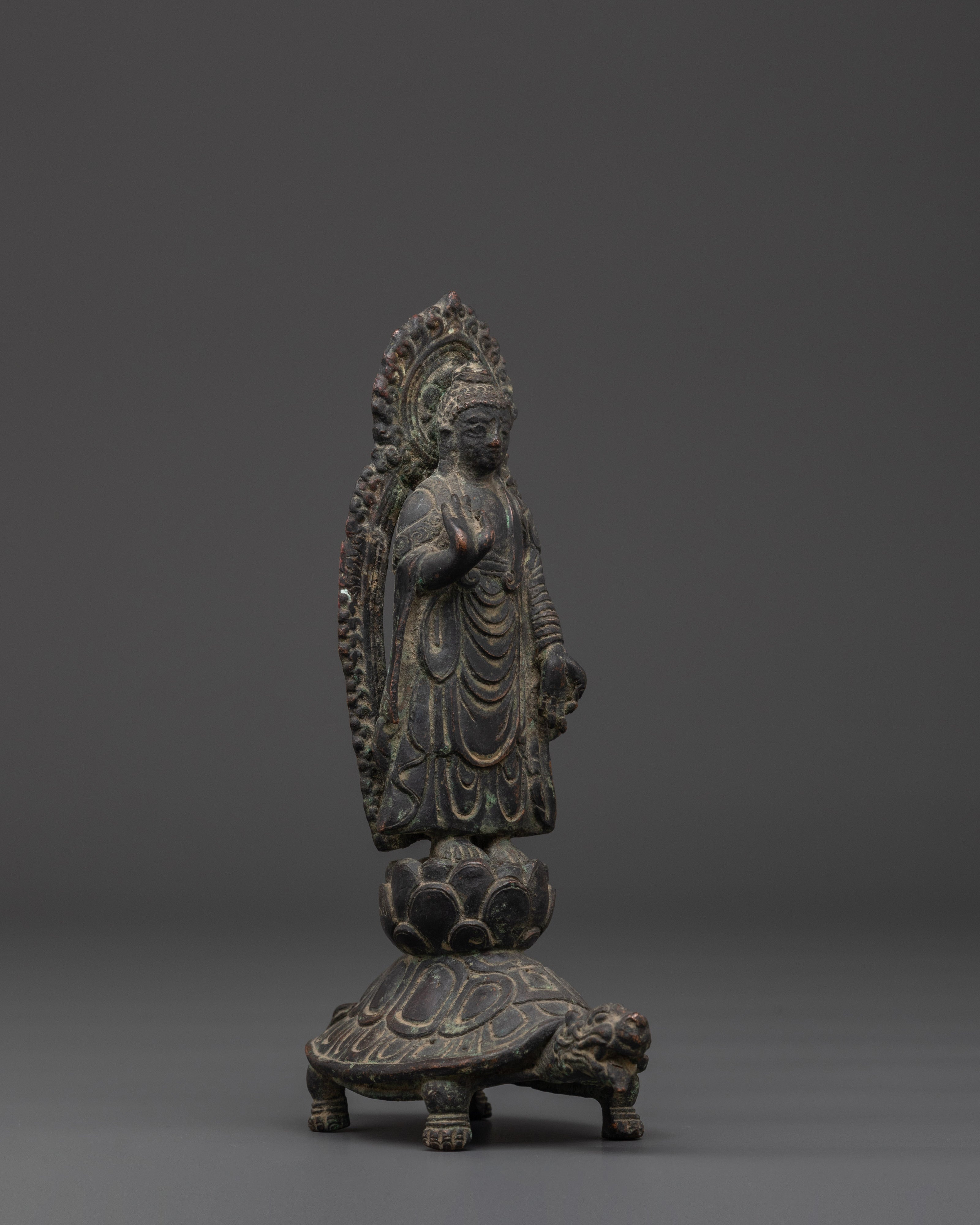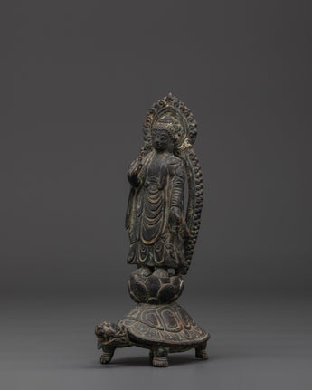 Buddha on Turtle Statue | Copper Sculpture for Wisdom and Protection