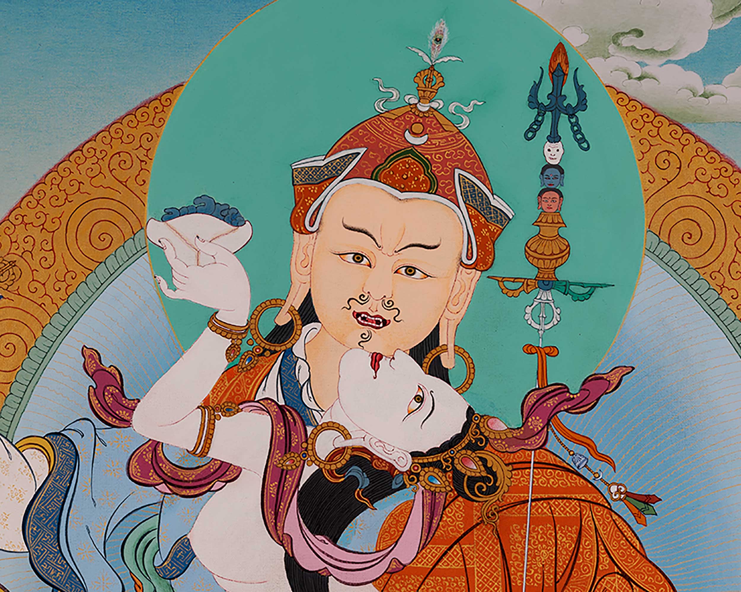 Guru Padmasambhava is not only a fully enlightened Buddha but has also manifested as one of the greatest sages of the Vajrayana Buddhist world. He was born miraculously and served infinite beings for millenniums through the power of his wisdom and compassion. He manifested Zangdok Palri Pureland and remained there in the body of light.