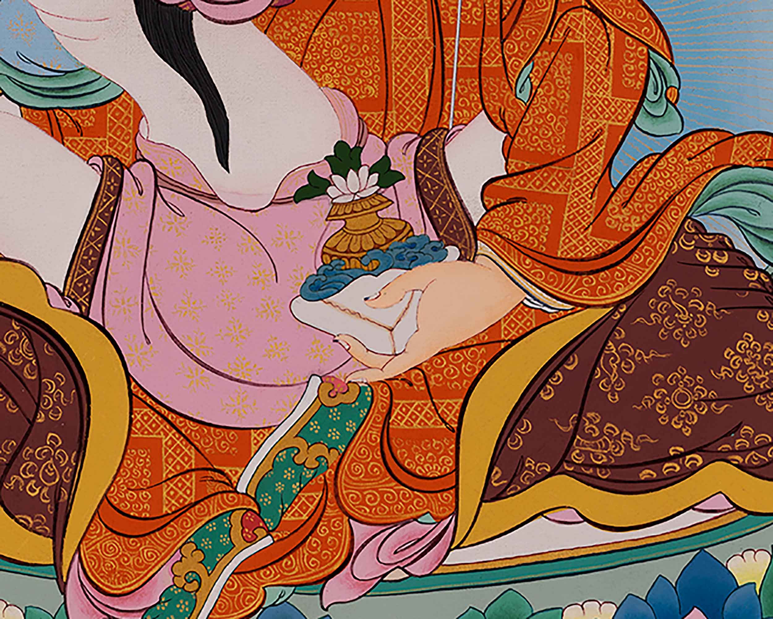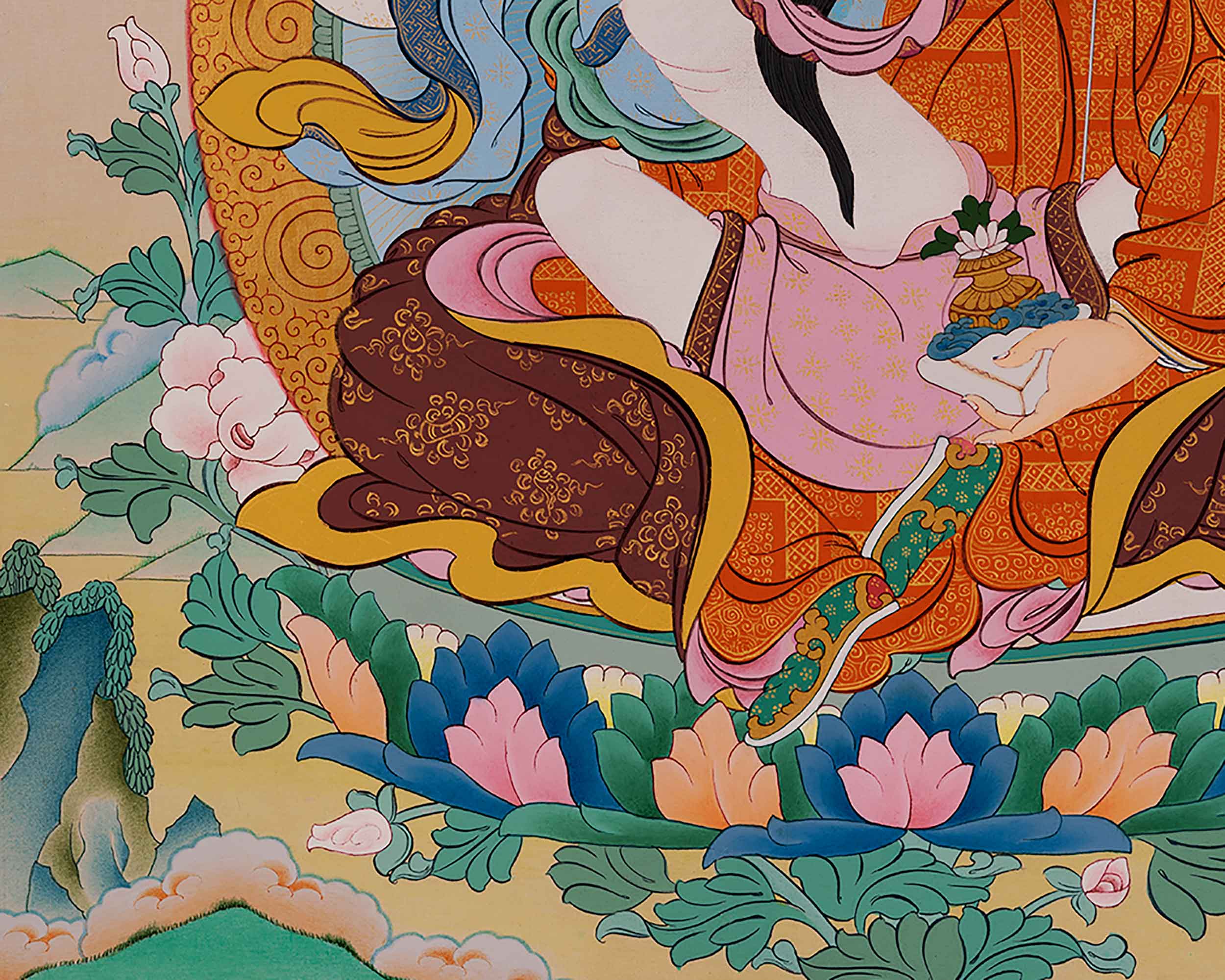 Note: Guru Rinpoche Consort Thangka is an original painting from Enlightenment Studio located at Boudha Stupa.
