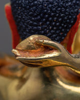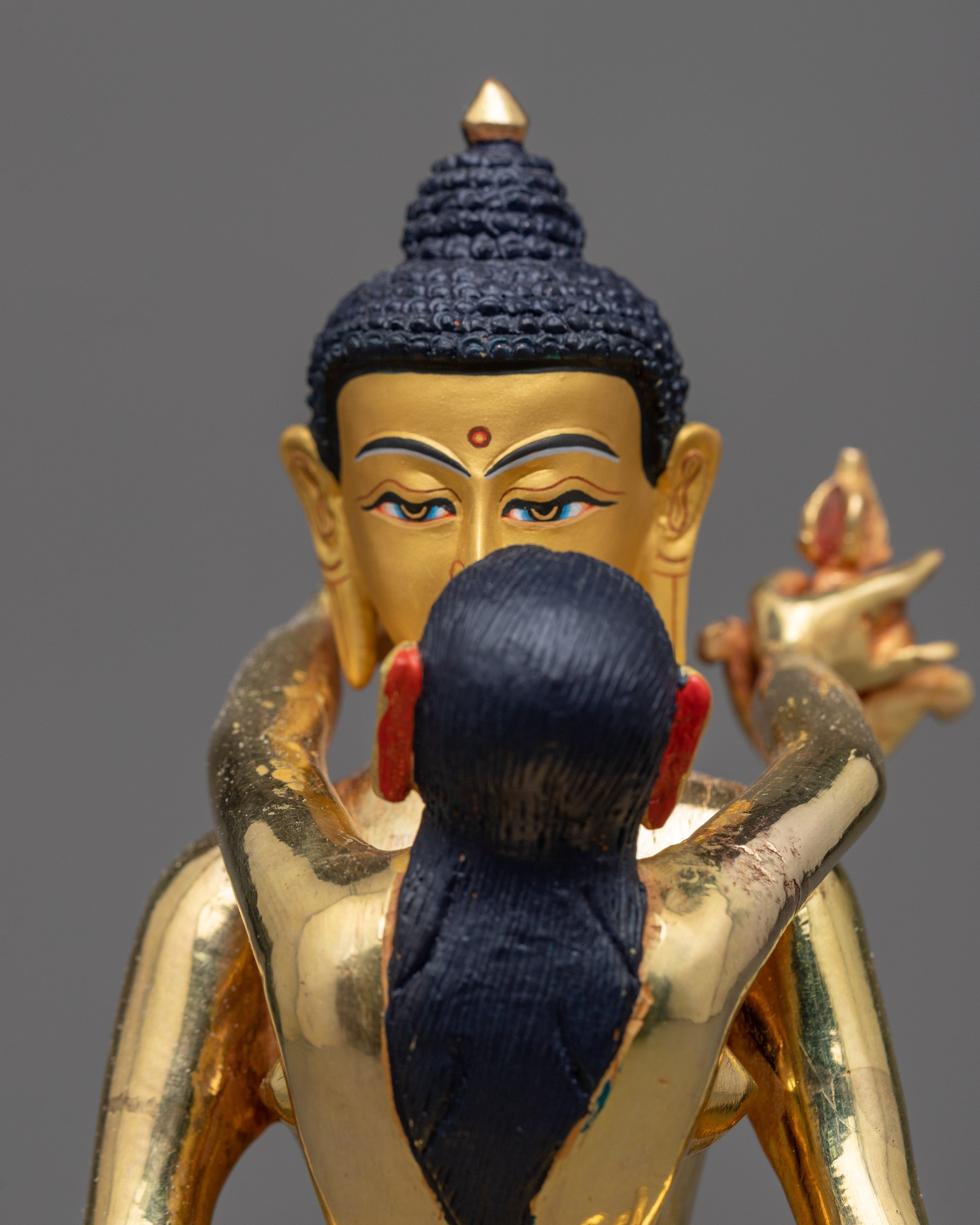 Introducing the magnificent Buddha Samantabhadra with Consort Statue, a profound representation of the primordial Buddha of the Dzogchen lineage who represents the ultimate non-dual essence of reality. Standing 8.6 inches tall and weighing 1.61 kg, this statue embodies the spirit of Samantabhadra in union with his consort, Samantabhadri, exemplifying the ideal balance of wisdom and compassion. Crafted from copper and embellished with 24K gold plating and delicate gold and acrylic paintings, this sculpture exudes spiritual meaning and creative sophistication.