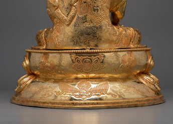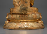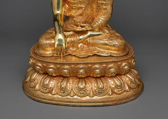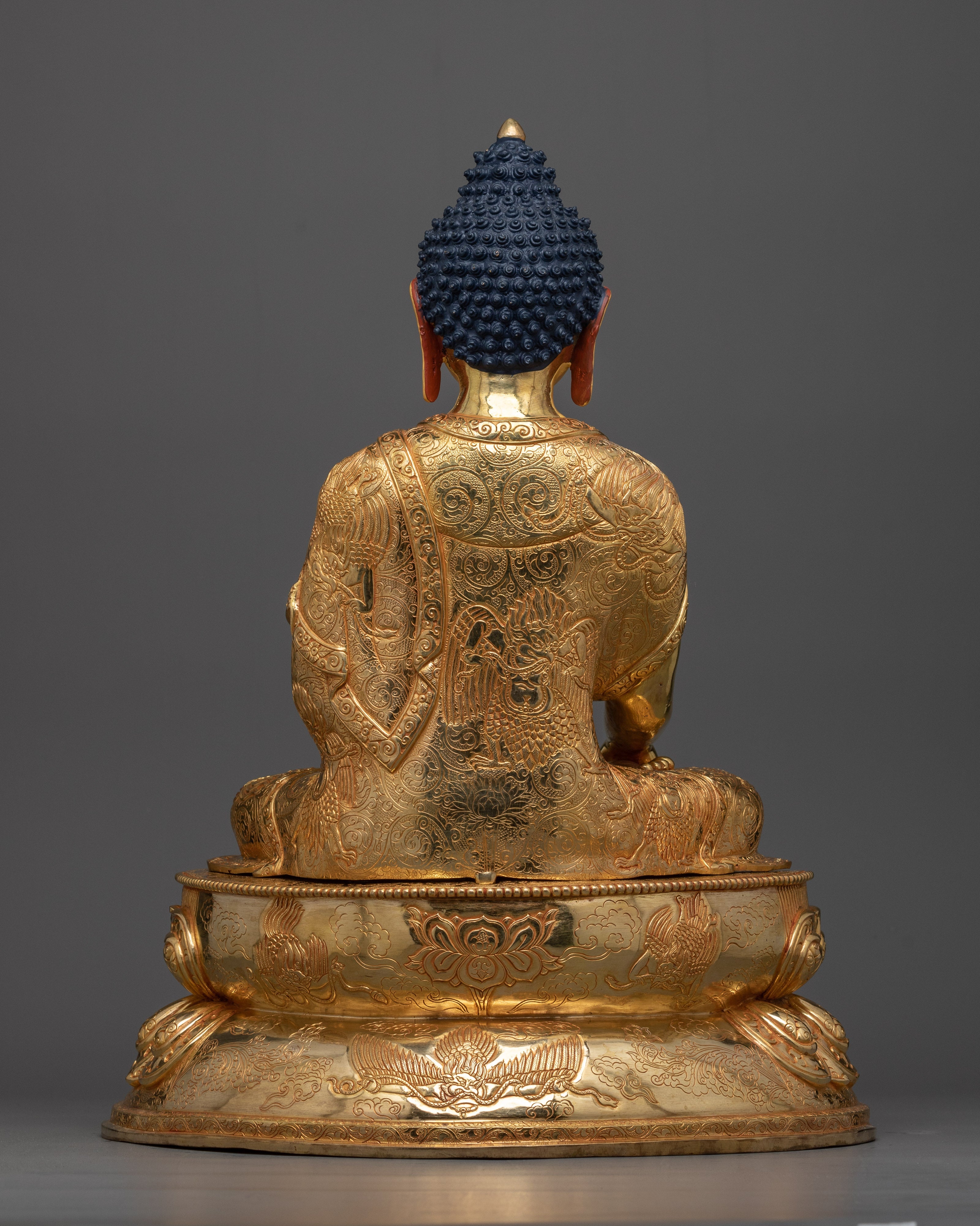This statue is meticulously made from a copper body and generously coated in 24K gold, creating a dazzling luster that emphasizes its sanctity. Shakyamuni Buddha's peaceful countenance is painstakingly detailed in the combination of gold and acrylic paintings. The Buddha's meditative stance and tranquil countenance are highlighted by the precise craftsmanship, inspiring a sense of serenity and contemplation.