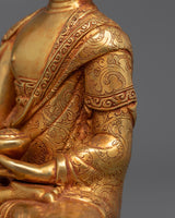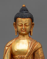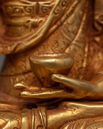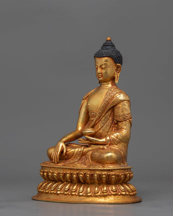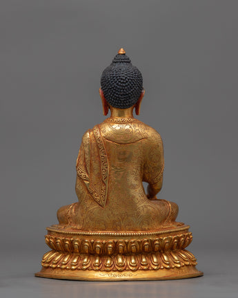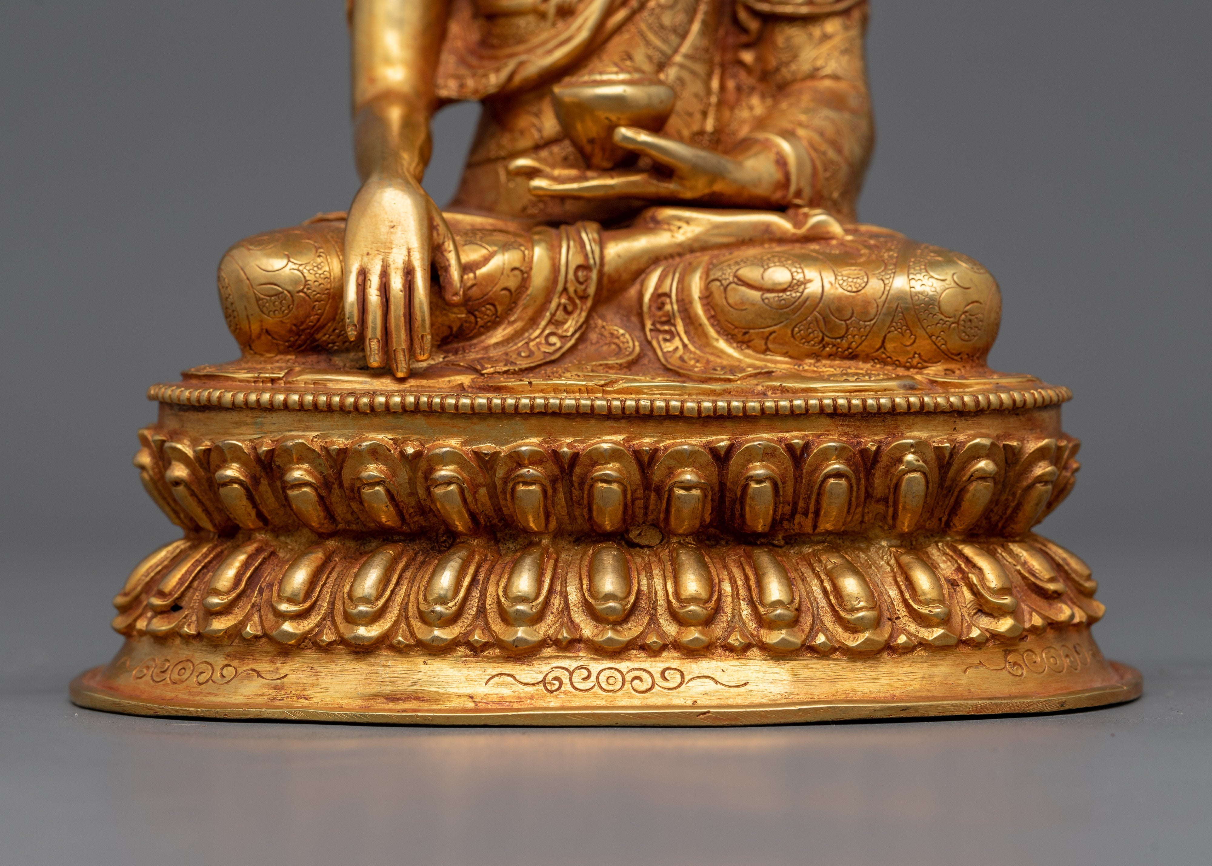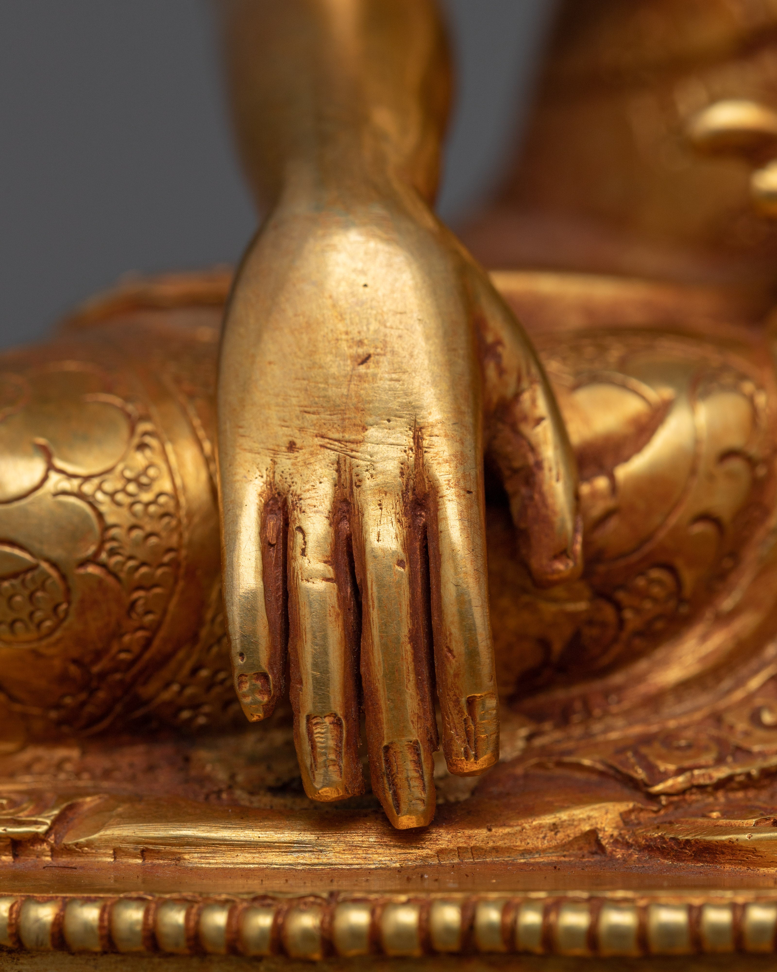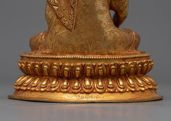 This statue, crafted from the enduring strength of copper and covered with a sumptuous layer of 24k gold gilding, not only exudes aesthetic charm but also captures the spiritual essence of the Buddha's teachings. To make the statue even more precious, we have finished it in an antique way. As a result, the statue will give the feel of it being an old relic rather than a modern art.