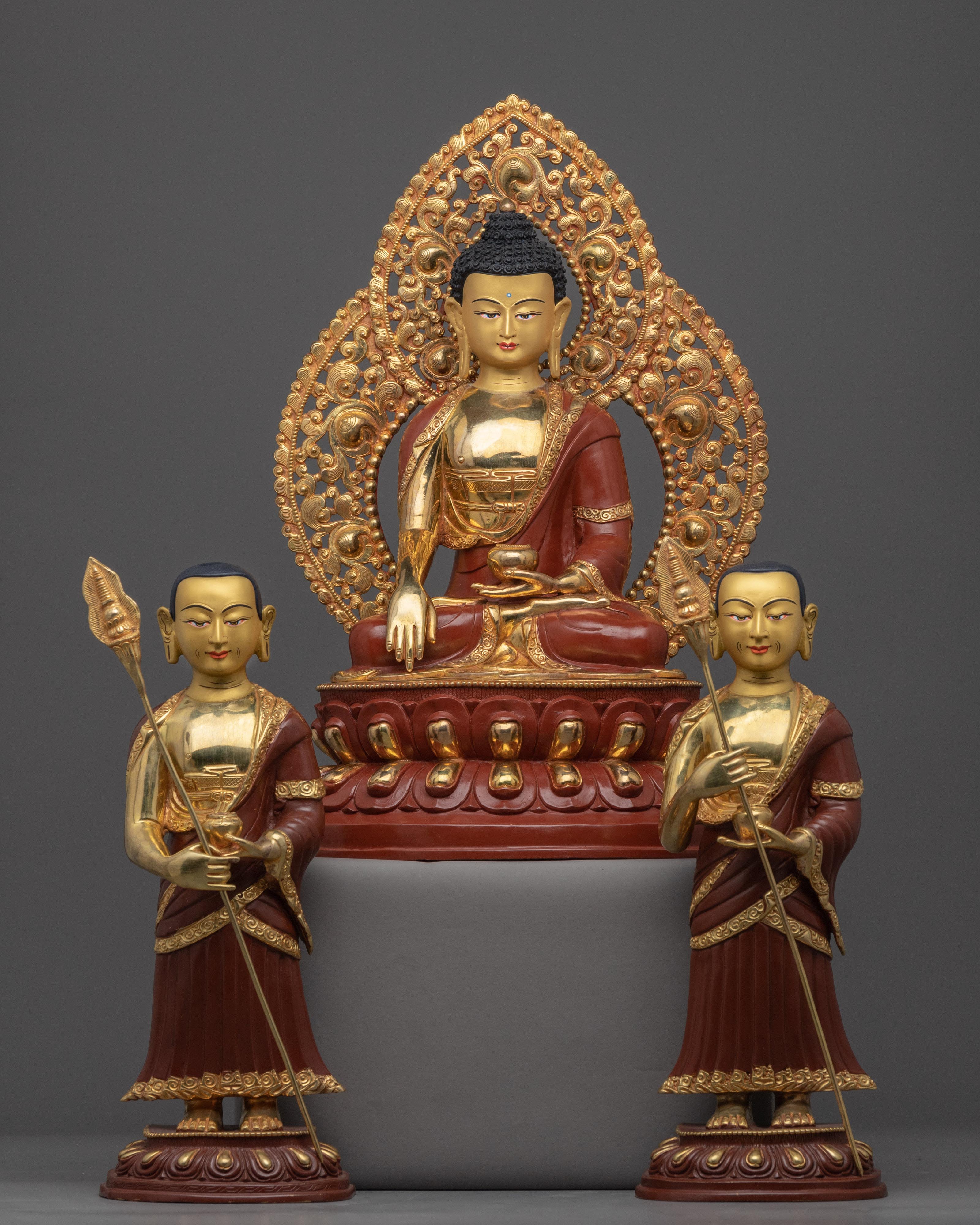 Buddha Shakyamuni Statue With Disciples | Finely Carved Traditional Statue Set