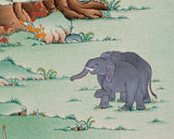 Shakyamuni Buddha descended to the world to show the right path to the fortunate beings. This Buddha thangka is done in traditional Karma Gadri style, which is a major thangka painting style from Kham, Eastern Tibet. The real beauty of this tradition is, it focuses on the central figure. Giving priority and space for the central deity to stand out. The subtle use of colour in Buddha and minimalistic composition makes this thangka more special.