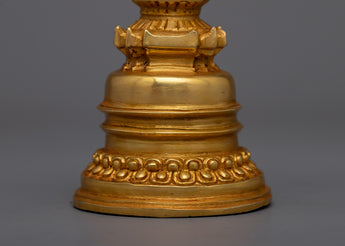 The Gold Plating of the Kadampa Stupa represents the purity and wisdom inherent in the path to enlightenment, and it also improves the statue's aesthetic appeal. It is meant to inspire and uplift people when placed in meditation areas or on personal altars; it is a beacon of harmony and peace.